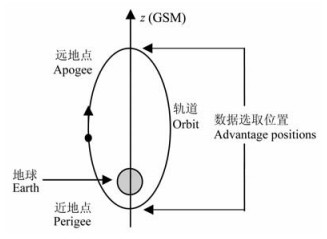 图 2 2004年11月的TC-2卫星轨道示意图和数据选取点位置 Fig. 2 TC-2 orbit sketch in Nov, 2004 and advantage satellite positions |