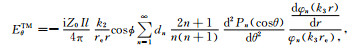 在地球物理中,测点往往在垂直平分水平电偶极子的水平直线附近,这条直线的方位角ϕ=π/2,故在计算中,取ϕ=π/2,故只需要计算EϕTE、HθTE、HrTE、EϕTM、HθTM.上面公式中,大阶数的球Bessel函数的变量是kr,其中