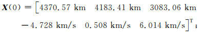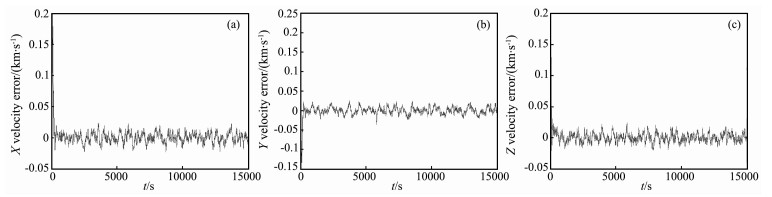 而以地磁场矢量作观测模型时,三个方向的平均位置误差分别为:2.7km、3.3km、2km,三个方向的平均速度误差分别为0.018km·s-1、0.014km·s-1、0.009km·s-1.