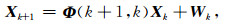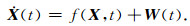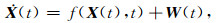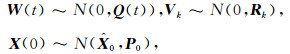 式中,X(t)为系统的状态向量,W(t)为系统的过程噪声,假设为零均值高斯白噪声过程,Q(t)为协方差矩阵,