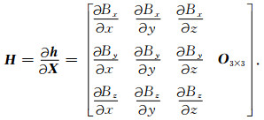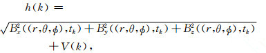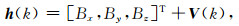式中,V(k)表示测量噪声,Bx、By、Bz分别表示地磁场强度矢量在地心固联坐标系下的分量.