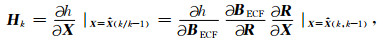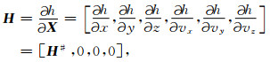 测量矩阵求解过程中,必须将所有的矢量统一在一个坐标系下.这里的状态方程和测量方程均在地心固联坐标系下表示,参考坐标系是地心固联坐标系.
