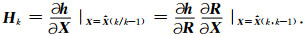 由于其观测量是一个标量,测量矩阵H矢量可以表示为