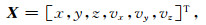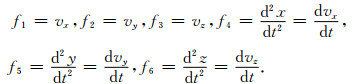 式中,x,y,z,vx,vy,vz分别表示卫星位置和速度在地心固联坐标系下的分量.