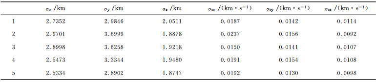 表 2 地磁炀矢量为观测量的定轨精度 Table 2 Orbit determination precision with geomagnetic vector as observation |