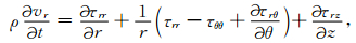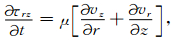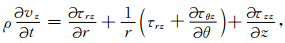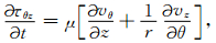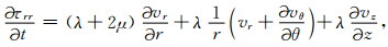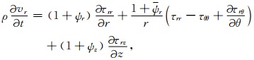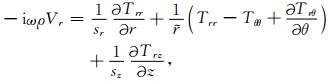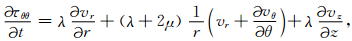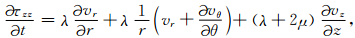 其中vα为速度分量,ταβ为应力分量,α,β=r,θ,z;ρ,λ和μ分别为密度和拉梅系数.