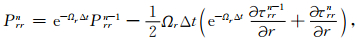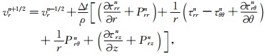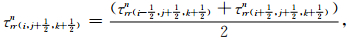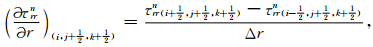 其中n是时间步序号,r=iΔr,上式省略了空间网格序号(i,j+1/2,k+1/2),其中