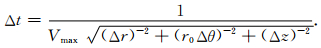 为保证计算精度,本文取Nr,Nθ,Nz大于等于7. Vmax和Vmin分别为模型中介质的最大和最小体波速度,rmax为模型外边界的半径.