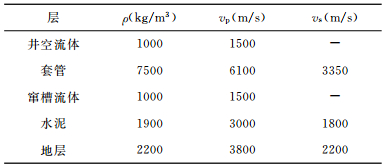 3 方法验证与模拟结果 3.1 并行算法的验证为验证算法的正确性,我们将图 1中模型退化为轴对称情况,将用并行有限差分方法模拟的波形与由实轴积分法[23]计算的结果对比,见图 5.在图 5算例中,轴对称发射-接收换能器用普通柱状(360°)声源模拟,中心频率20kHz,声源-接收器间距0.6096m(2ft);测井仪、井孔流体、套管和水泥环的外半径分别为20mm,60mm,70mm和100mm,换能器高度40mm;各介质声学参数见表 1;有限差分网格步长为Δr=4.0mm,Δz=8.021mm,Δθ=2.813°(0.0491rad),Δt=1.55×10-4 ms,NPML层厚度为15个网格.