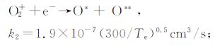 式(2)~(4)中的Te 是电子温度,k表示各化学反应的速率.近似认为电离层背景主要由O,O2 和N2 组成,因此CO2 和SF6 的扩散系数[11]表示为