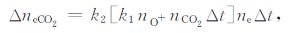 下面以CO2 和SF6 为例来研究电离层的人工扰动效应,它们在电离层背景中的离子化学过程[4]如下: