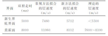 (4) 用深反射地震和双船折射地震等得到的深部速度及基底和莫霍面的理论速度,验证拟合时深尺的合理性.如果合理,应用时深尺进行时深转换;如不合理,则转至步骤(2),继续选取控制点,直至计算的速度合理.