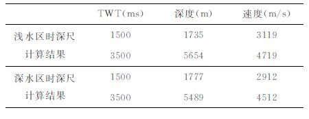 在浅水区和深水区交界处应用不同的时深尺,会得到不同的结果(见表 5).因此应用克里金法进行插值,以减少其误差.