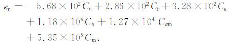 为了检验(2)式是否有意义,必须对其进行有效性检验.应用F统计量检验回归方程的显著性.经SPSS软件计算得出观测值F0=348.25(显著性水平选为95%),查F分布表得临界值Fα=2.54,F0<Fα,说明(2)式的线性关系是显著的.然后对回归系数进行t分布显著性检验,经SPSS计算结果可知,Cm(磁铁矿)、Cam(角闪石)、Cb(黑云母)三项通过显著性检验,Cq(石英)、Cf(斜长石)、Ca(碱性长石)没有通过显著性检验.说明前三者与κr 显著线性相关,而后三者与κr 线性相关不显著.