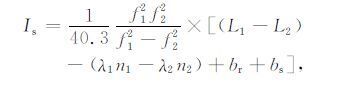 GPS 卫星采用两个工作频率f1 =1.57542GHz, f2=1.2266GHz发射卫星信号.沿传播路径(从GPS卫星到接收台站的路径)上的电子浓度总含量TEC可以通过差分载波相位得到,公式如下[13]: