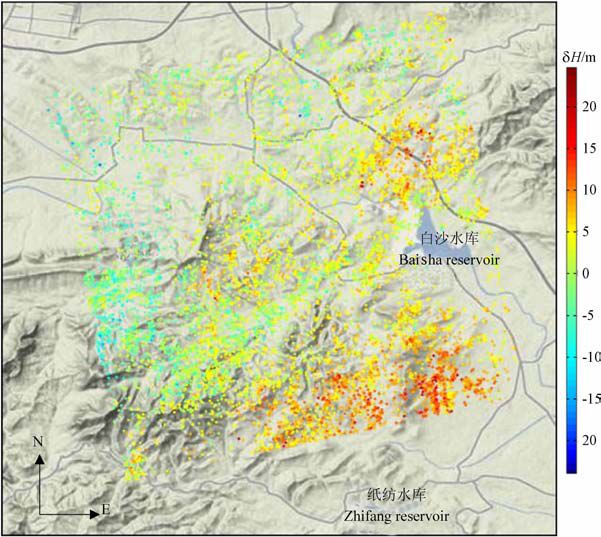 图 11 研究区域PS点高程改正结果 Fig. 11 Height correction on PS points over the study area |