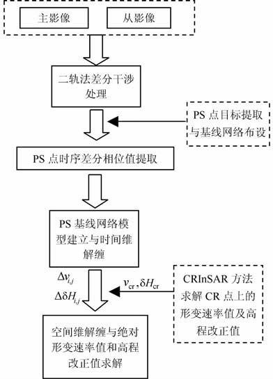 图 2 CRInSAR与PSInSAR联合解算算法流程图 Fig. 2 Flowchart of PSInSAR and CRInSAR federative calculation algorithm |