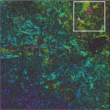 图 4 差分干涉图(2008-06-21 〜2009-08-09) Fig. 4 Differential interferogram(2008-06-21 〜2009-08-09) |