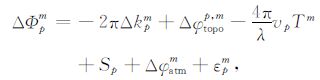 对于PS网络中任意一条PS基线(含PS点i和j),对这两点的相位值作差,可建立如下模型[3~5]: