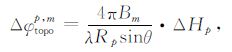 式中p表示CR 点号,m表示干涉对序号;ΔΦpm为第p个CR 点相对于参考CR 点的干涉相位差;Δkpm为整周模糊度差;vp为CR 点相对于参考点的形变速率;Tm为时间基线;Sp为系统误差参数;Δφatmm 是大气延迟引起的相位;ε 是残余相位和噪声;Δφtopop,m为地形引起的相位,可根据下式计算:
