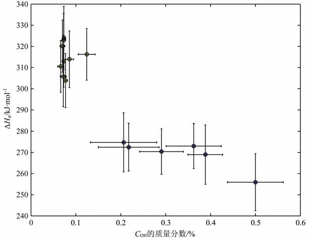 以上两方面的拟合结果表明水对长大率的影响主要体现在对摩尔亥姆霍兹活化能的影响上:含水量增加,摩尔亥姆霍兹活化能减小.