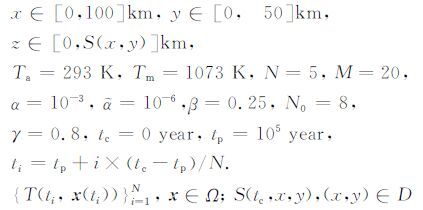 2.1 HTPM 数学模型HTPM 数学模型主要描述山体内部的热传导情况,包括以下三个方面:热对流(heat conduction)、岩石移动引起的热扩散(transportation of rocks)还有放射性元素的辐射能量(finite concentration of radioactive isotopes).假设考虑的模型定义在下面区域内: