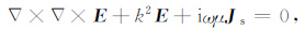 将(1)式两边取散度后,再把(2)代入(1)式可导出电场E所满足的矢量波动方程:
