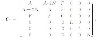 横向各向同性介质由5个基本常数A,C,L,F,N确定,在直角坐标系(x,y,z)中当介质对称主轴z′ 与z轴重合时,弹性系数矩阵为