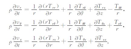 式中${{\dot{T}}_{\mu v}}$ 表示Tμν(μ,ν=r,θ,z)对时间的一阶导数,