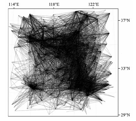 图 2 地震射线分布图(取全部射线的1/6) Fig. 2 Seismic rays distribution (one sixth extracted from whole rays) |