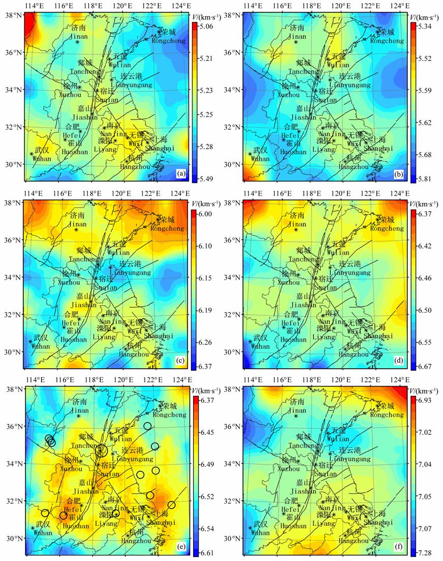 (3) 研究区内郯庐断裂带速度结构呈现分段性,这可能反映了不同构造块体间的速度差异,郯庐带作为构造区间的边界是明显的.