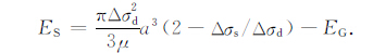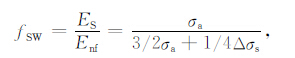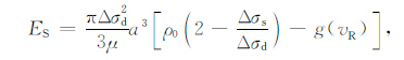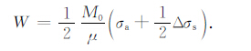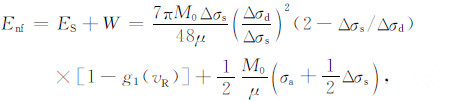 当断层破裂时,近断层运动包含了造成永久形变所做的功以及伴随的高频能量辐射.那么近场能量Enf 可以表达为Enf =ES+W.对于圆盘断层而言,W=πa2ΔσsΔu/2为断层准动态的从0滑动到平均最终位移Δu的近场能量,其中:Δu=16Δσda/(7πμ)[10].由于服从滑移弱化准则,按照图 2 的能量分配关系可得Δσd =af +1/2Δσs, 因此有: