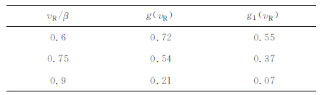 表 1 在vR/β 为0.6β、0.75β 和0.9β 时g(vR)与g1(vR)的取值. Table 1 WhenvR/β is 0.6β、0.75β and 0.9β,the value ofg(vR)andg1(vR) |