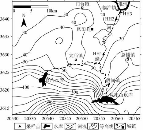 濠河是淮河的一条支流,发源于安徽凤阳县官沟水库和凤阳山水库(图 1),在官沟水库一支的上游分布有400多家以湿法生产的石英砂企业.近十年来,随石英砂产量的逐年递增,石英尾砂排放量也急剧增加.经雨水冲刷,大量石英尾砂涌入濠河,对濠河产生了严重的不良影响,如堵塞河道、抬高河床等.本文通过对濠河中、下游典型剖面上的沉积物磁性参数测量,分析了沉积物中SiO2 质量分数(w(SiO2))的变化规律,初步探讨了石英尾砂对濠河中、下游沉积物磁学性质所产生的影响,以及沉积物磁性特征与沉积环境的关系,为应用环境磁学方法监控、评估及治理濠河提供新的依据.