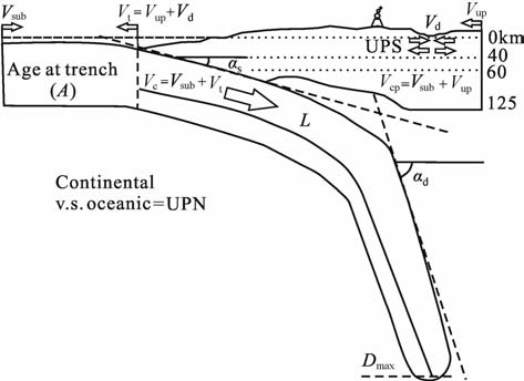 图 2 与俯冲有关的参数示意图 (据 Lallemand 等,2005 [46]) Fig. 2 Schematics of subduction parameters (refers toLallemand et al.,2005[46]) |