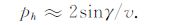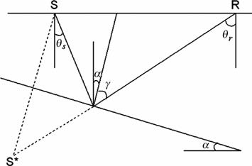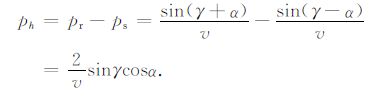 但是,上式含有平面波在地下局部反射点处的入射角,因而不能直接用来进行实际计算.在地下局部反射点处,入射角γ、反射界面倾角α 与偏移距射线参数ph满足一定的几何关系.如图 1所示,在二维情况下,炮点、检波点与反射点共面.偏移距射线参数ph可以表示为