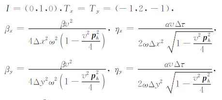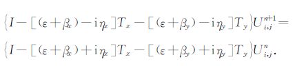 Ui,jn= $\tilde{U}$(iΔx,jΔy,nΔτ;ω).关于ε 的取值,Claerbout[10]有较详细的讨论.一般地,取ε =$\frac{1}{6}$或ε=$\frac{1}{4}-\frac{1}{{{\pi }^{2}}}$.