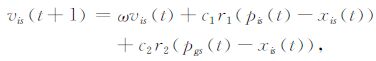 粒子i通过式(1)、式(2)决定下一步的运动位置.式中,s=1,2,…,n,代表搜索空间的维数,ω 为惯性权值,代表前一时刻的速度对当前时刻速度的影响.ω 较小时,粒子容易陷入局部最优,当ω 较大时,粒子可以跳出局部极值,但收敛速度较慢.因此调整ω 的大小可以在粒子收敛性和计算速度之间取得平衡,通常在迭代初期ω 取值较大,收敛速度较快,ω 随着迭代过程线性变小,在迭代后期使得解跳出局部极值.c1、c2 为系数,c1 为粒子自身的加速度权重,代表粒子向自己经验的学习,c2 为全局加速度权重,代表粒子向群体经验的学习;r1、r2 为介于[0, 1]间的相互独立的随机数,一般服从正态分布,从而动态调节粒子向自身经验学习和向群体经验学习的权重.为了减少进化过程中粒子离开搜索空间的可能,通常对速度vi限定在一个范围[vmin, vmax]之内,而粒子的位置通常由先验信息加以约束.