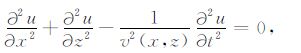 其中u(x,z,t)为位移函数,v(x,z)为介质在(x,z)点的速度.若考虑平面波入射,方程变为
