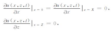 其中,G(t)为震源函数,δ(z)为δ 函数.在区域Ω =[0,X]× [0,Z]上考虑方程,边界条件可描述为