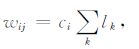 (c)网格点设置好后,就可以建立权矩阵W,且W满足
