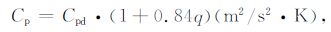 其中ρ 为空气密度(kg/m3),Cp 为湿空气定压比热(J/K·kg),Lv 为蒸发潜热(J/kg).Cp 和Lv 计算公式为[13]