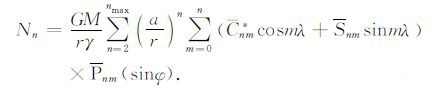 式中R为地球平均半径,取6371.2km.得到重力位球谐表达式阶窗n与场源深度Zn以及相应波长λ的对应关系;然后利用EGM2008模型通过式(6)[2]计算出不同阶窗的截断大地水准面Nn;最后从大地水准面N中减去Nn,得到包含不同深度异常信息的剩余大地水准面ΔNn+1,即ΔNn+1 = N-Nn,且2<n≤nmax,并对它们的异常形态进行详细的物理解释.