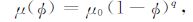 式中K(φ)表示孔隙度为φ 时的干岩石体积模量,K0 为组成岩石的固体矿物的体积模量.μ(φ)表示孔隙度为φ 时的干岩石剪切模量,μ0 为组成岩石的固体矿物的剪切模量.式中的系数p和q表示为