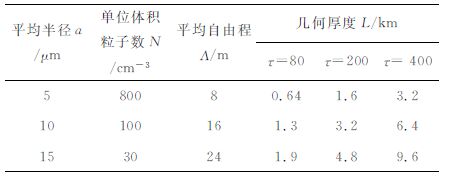 光子在云中的平均自由程是由云特性决定的.光子在不同的云中具有不同的平均自由程,与云的光学厚度τ 和几何厚度L(km)有关,即