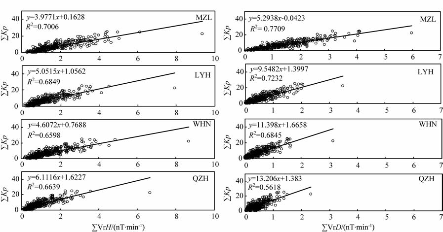 图 1 ΣKp指数与ΣVrH、ΣVrD的统计关系 Fig. 1 Statistical relationship between ΣVrH,ΣVrD and ΣKp |