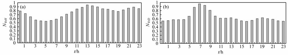 图 6 (a) NVrH随地方时变化;(b) NVrD随地方时变化 Fig. 6 (a) The variation of NVrH with LT; (b) The variation of NVrD with LT |