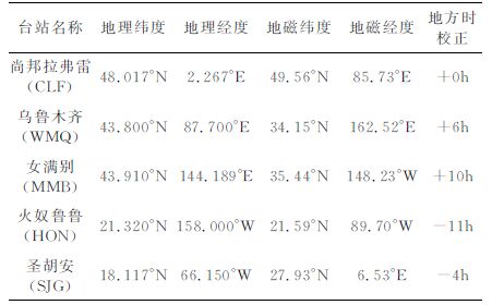 表 1 地磁台站地理和地磁坐标 Table 1 Geographic coordinates and geomagnetic coordinates of the observatories |