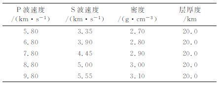 表 1 分层介质模型 Table 1 Layered velocity model |
