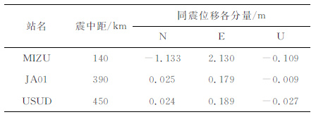 表 1 近震区高频GPS测站同震位移 Table 1 Coseismic permanent displacements of near-field stations |